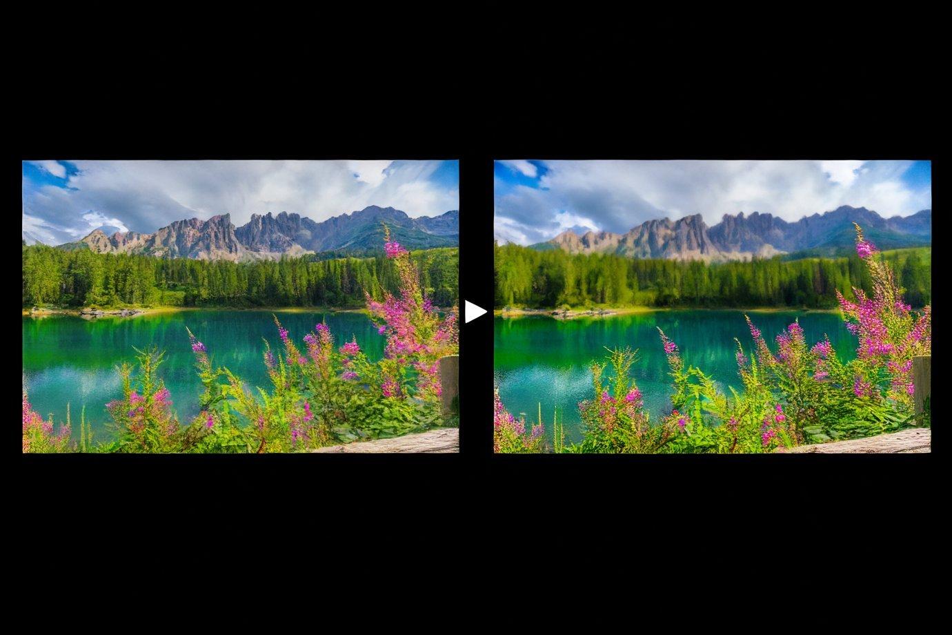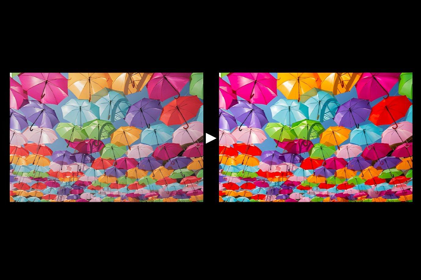 Adaptacyjne przetwarzanie gamma dzieli obraz na mniejsze segmenty i zwiększa kontrast w każdej sekcji. Doświadcz żywej głębi dzięki ulepszonemu światłu i cieniowi.