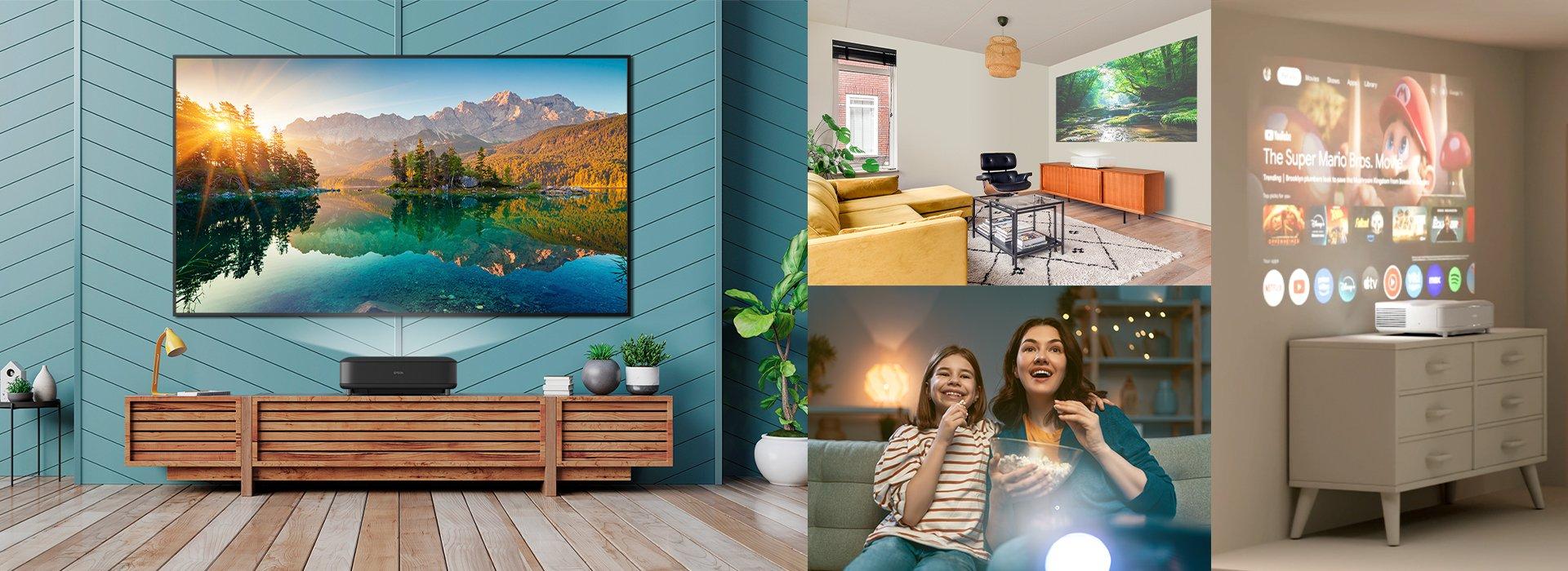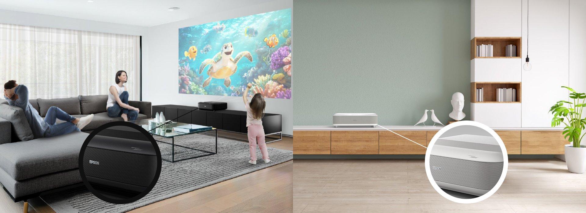 Ciesz się domową rozrywką na najwyższym poziomie dzięki projektorom firmy Epson i na nowo zdefiniuj swoje wrażenia z oglądania, wykraczając poza ograniczenia standardowych telewizorów.