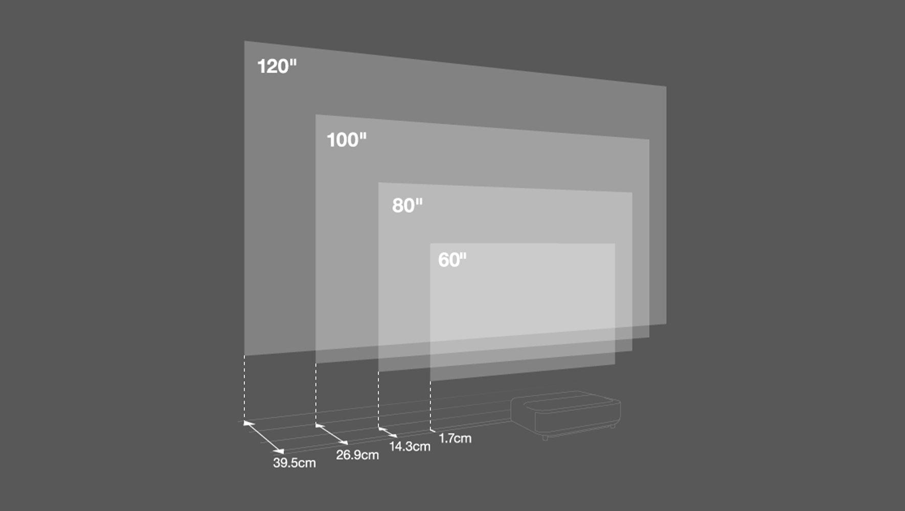 2 Only 26.6cm projector distance from the wall achieves 100inch.